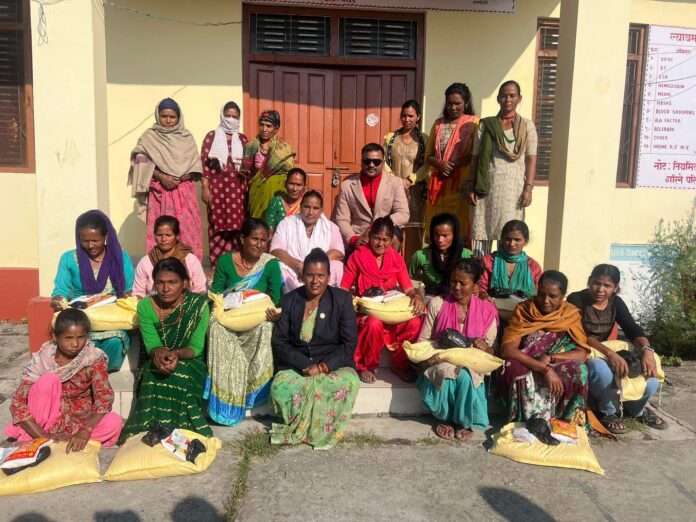 कञ्चनपुर, ६ कार्तिक । कञ्चनपुरको बेल्डाँडी गाउँपालिका उप प्रमुखले आफुले पाएको भत्ताबाट बेसाहरा महिलालाई खाद्यान्न वितरण गरेकी छिन । बेलडाँडी गाँउपालिका उपप्रमुख शान्ति नाथले आफुले पाएको भत्ताको रकमबाट बेसाहरा महिलालाई खाद्यान्न सहयोग गरेकी हुन ।