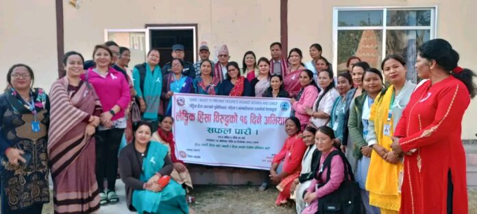 महेन्द्रनगर । महिला हिंसा विरुद्धको १६ दिने अभियाना सुरु भएको छ । ‘घरैबाट शुरु गरौं, महिला हिंसा अन्त्य गरौं’ भन्ने मूल नाराका साथ शनिबार देखि यो अभियान सुरू भएको हो ।२०७५ साल मंसिर २ गते बसेको मन्त्रिपरिषद बैठकले नेपालमा मंसिरको ९ गतेदेखि २४ गतेसम्म सामाजिक सचेतनासहित लैंङ्गिक हिंसा विरुद्घको अभियान सञ्चालन गर्न संघीय सरकारका मन्त्रालय तथा निकायहरु, ७ वटा प्रदेश सरकार, ७७ वटै जिल्ला समन्वय समिति, ७ सय ५३ स्थानीय तह एवं त्यसका वडाहरु सरोकारवाला निकायहरु, सामाजिक संघसंस्थाहरुलाई आह्वान गर्ने निर्णय गरेको थियो ।