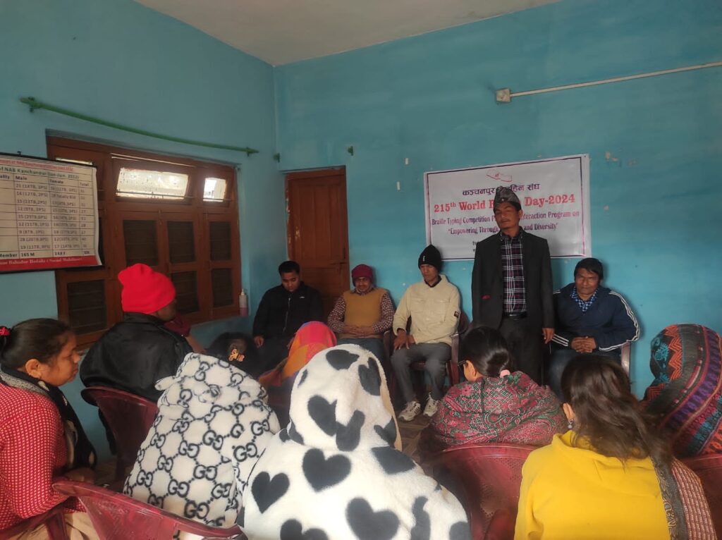 उक्त कार्यक्रममा दृष्टिविहिन अपाङ्गता भएका व्यक्तिहरु लाई ब्रेल दिवसको स्थापना देखि ब्रेलको बारेमा प्रसिक्षण कञ्चनपुर नेत्रहिन संघका उपाध्यक्ष अम्बा दत्त जोशीले दिएका थिए। विश्वम ब्रेल दिवस प्रत्येक वर्षको जनवरी ४ तारिकमा मनाइने गरिन्छ ।