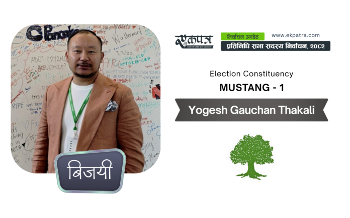मुस्ताङ निर्वाचन क्षेत्र नम्बर १ बाट नेपाली काँग्रेसका योगेश गौचन थकाली विजयी भएका छन्। उनले ३,३०७ मत प्राप्त गर्दै जित सुनिश्चित गरेका हुन्। उनका निकटतम प्रतिद्वन्द्वी नेकपा (एमाले) का इन्द्र धारा डाडु विष्टले १,८०६ मत प्राप्त गरेका छन्। थकालीले विष्टलाई १,५०१ मतान्तरले पछि पारेका हुन्। राष्ट्रिय स्वतन्त्र पार्टीका अद्वितीय चन्द्र थकाली भने ७५१ मतका साथ तेस्रो स्थानमा रहेका छन्।