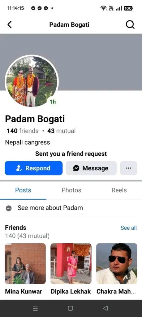 महेन्द्रनगर । भीमदत्त नगरपालिकाका नगरप्रमुख पदम बोगटीको नाम, फोटो र परिचय प्रयोग गरी केही व्यक्तिहरूले नक्कली (फेक) फेसबुक अकाउन्ट खोलेर विभिन्न व्यक्तिहरूलाई फ्रेन्ड रिक्वेस्ट पठाइरहेको जानकारी प्राप्त भएको छ ।