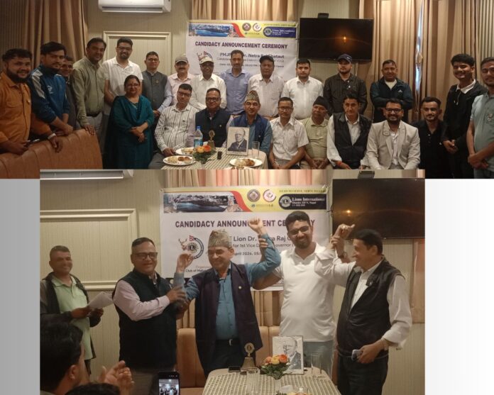 महेन्द्रनगर । लायन्स अन्तर्राष्ट्रिय डिष्ट्रीक ३२५ एन नेपालको प्रथम भाइस डिष्ट्रीक गभर्नर पदका लागि पीएमजेएफ लायन डा. नेत्रराज चटौतले औपचारिक रूपमा उम्मेदवारी घोषणा गरेका छन् ।